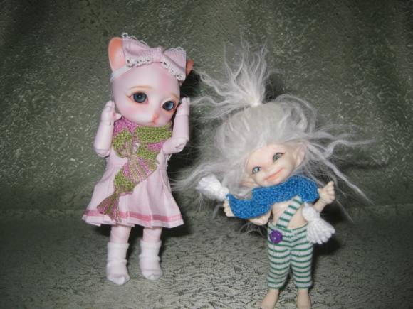 Вот такая bjd мелочь поселилась у меня совсем недавно: это Realpuki Soso от Fairyland и Piposland Junior Pi Sugar Ringo
