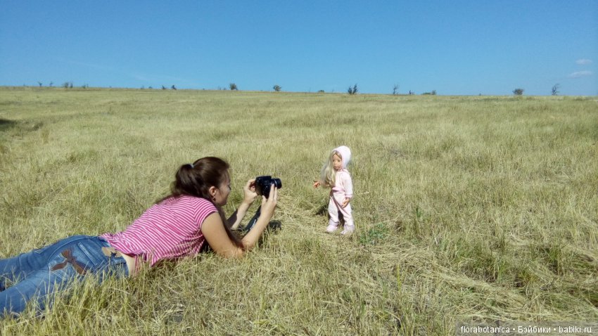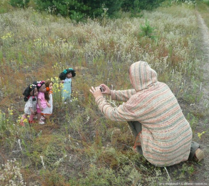 ТАм еще случайно проездом в гостях и племяшки были… Поэтому и удалось заснять момент фотографирования… (племяшка куклу поддерживает, дочка фотографирует, ну а я фотографирую их)