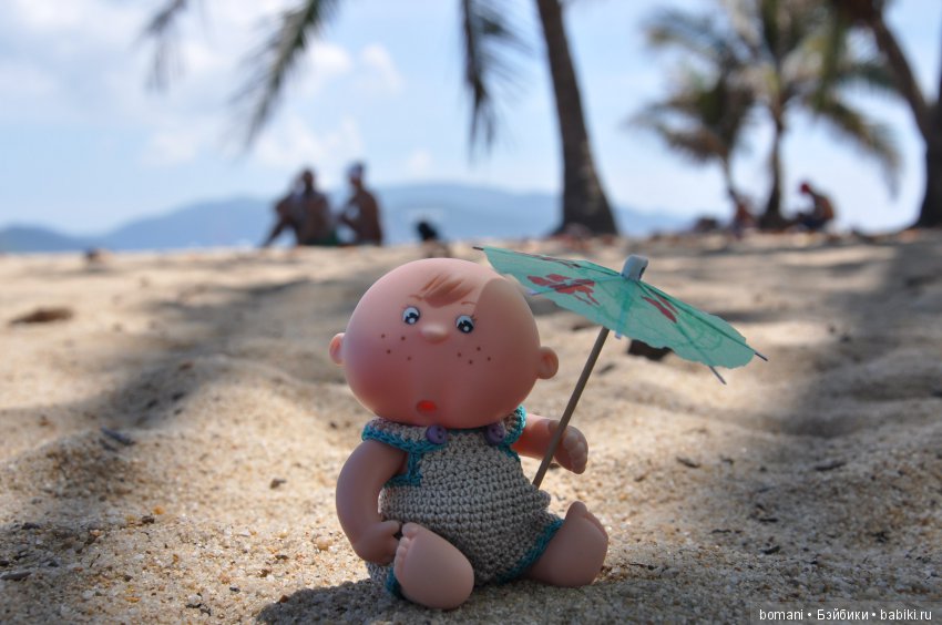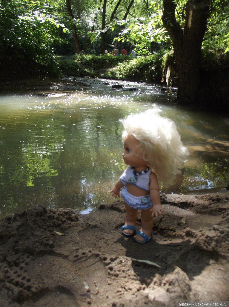 На этом фото море не так плещет.На самом деле только и успевала переставлять кукол, так как волны буквально захлестывали берег.