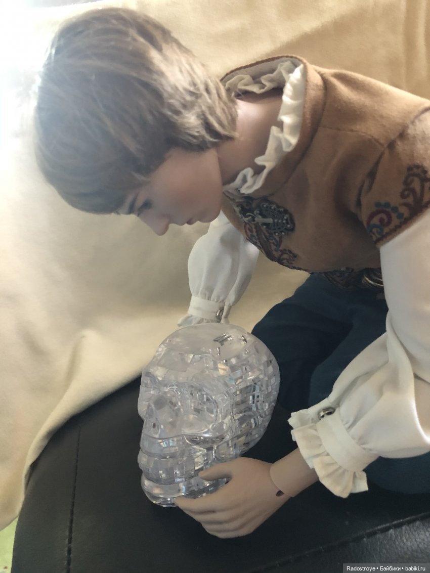 Я всегда мечтала изобразить куклу БЖД Гамлетом, задумчиво склоняющимся над черепом и произнося: «Быть или не быть? Вот в чем вопрос!» Тем более, что окружающее настроение подталкивало именно найти ответ на этот вопрос. На роль Гамлета у меня есть замечательный молодой человек Дэмьен от Racoondoll талантливого корейского художника-скульптора Sang Yoon Choi. Рост Дэмьена 52 см.