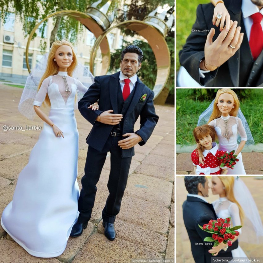 Жених у нас — сам Тони Старк, поэтому невеста могла позволить себе 2 свадебных платья)) Первое белое — в цвет его рубашки, второе — красное, под его железный костюм)))
