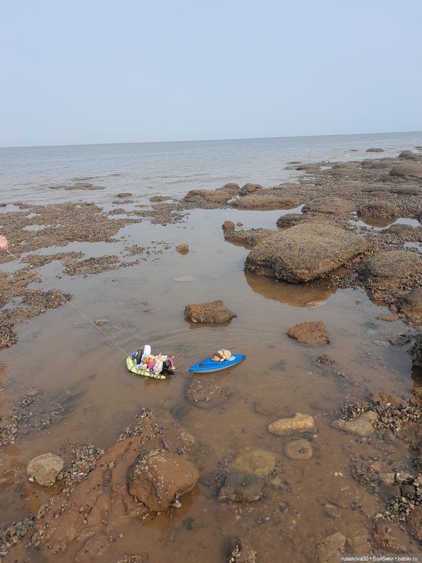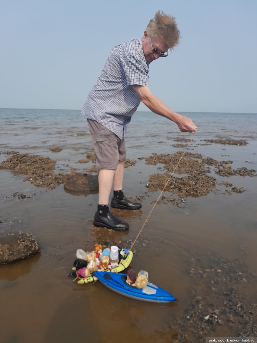 Сначала муж прыгал по камням с плавучими средствами и Машками…