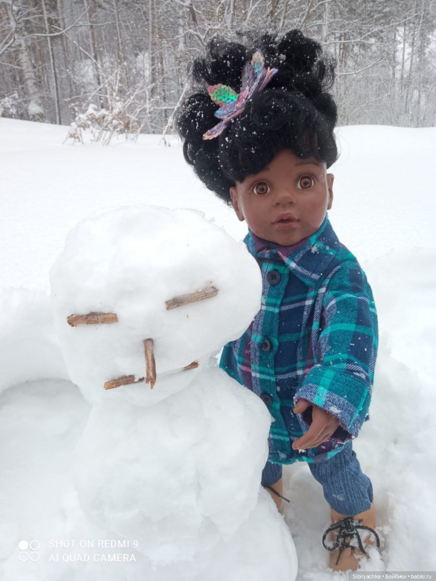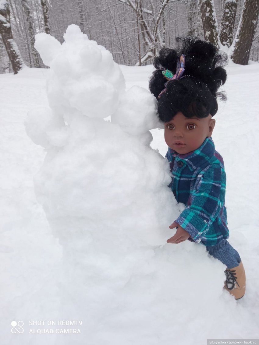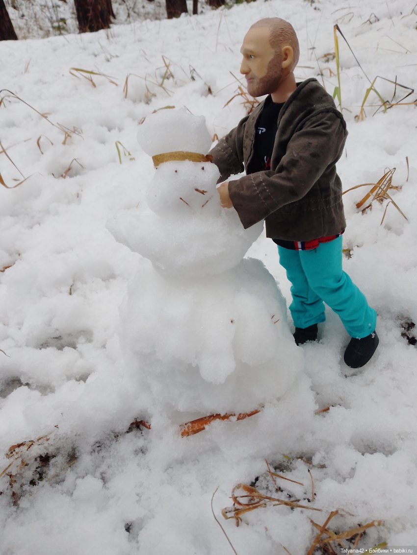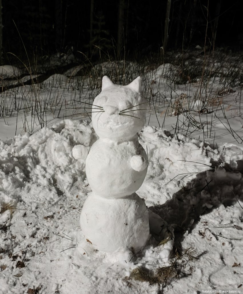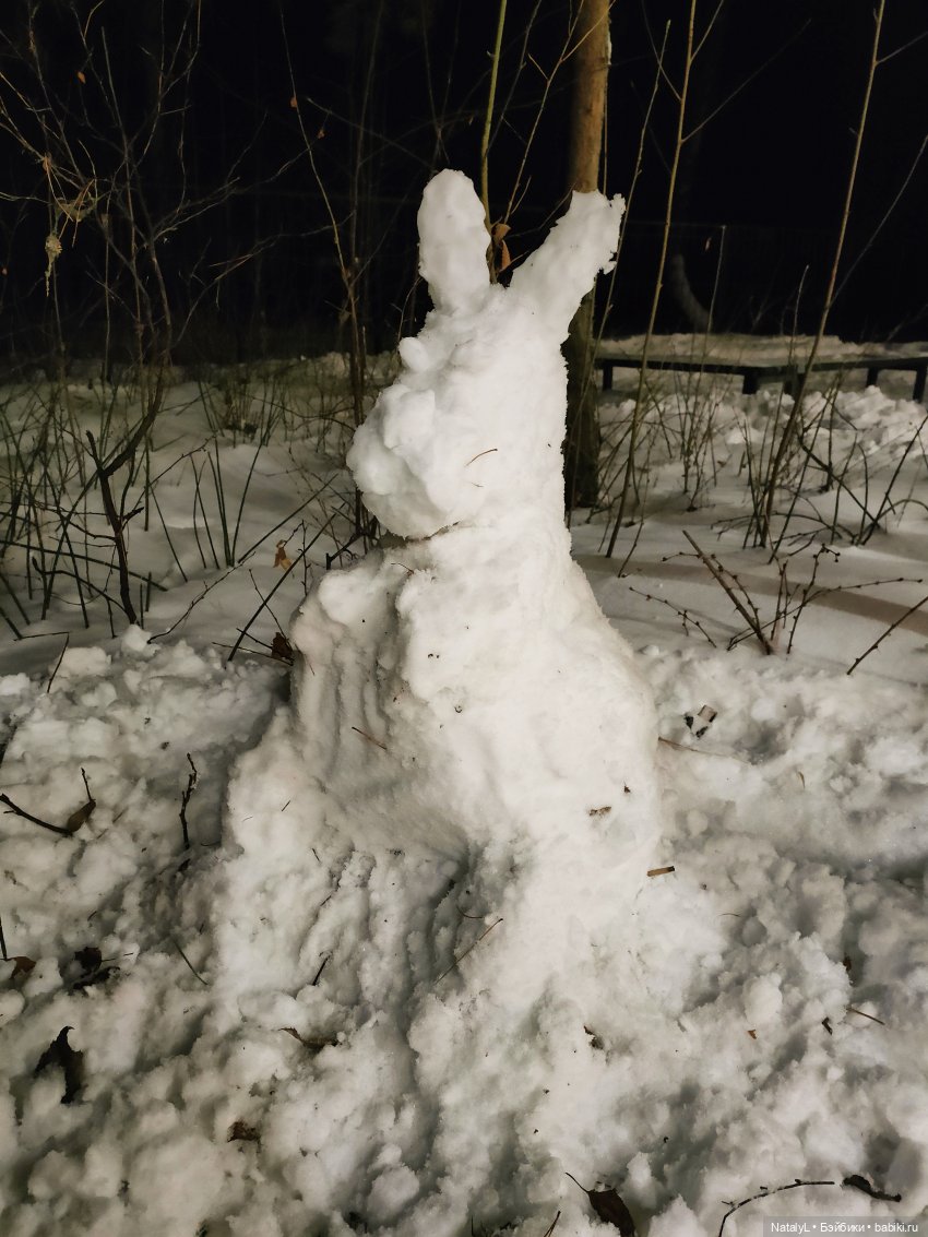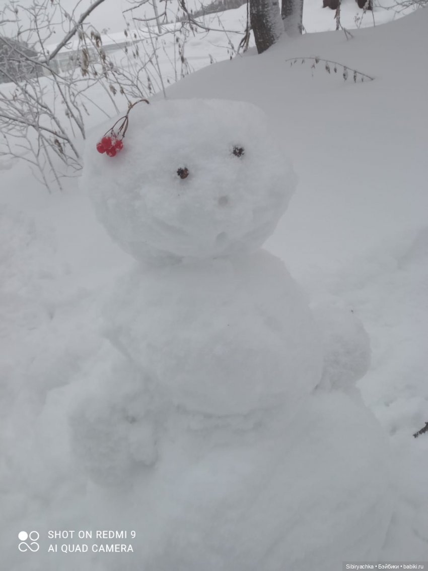 А мы вчера с Ниночкой слепили снеговика или снежную бабу. Мне кажется, это всё таки снежный мужчина.