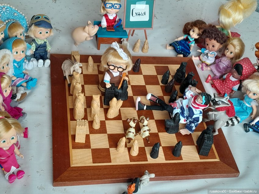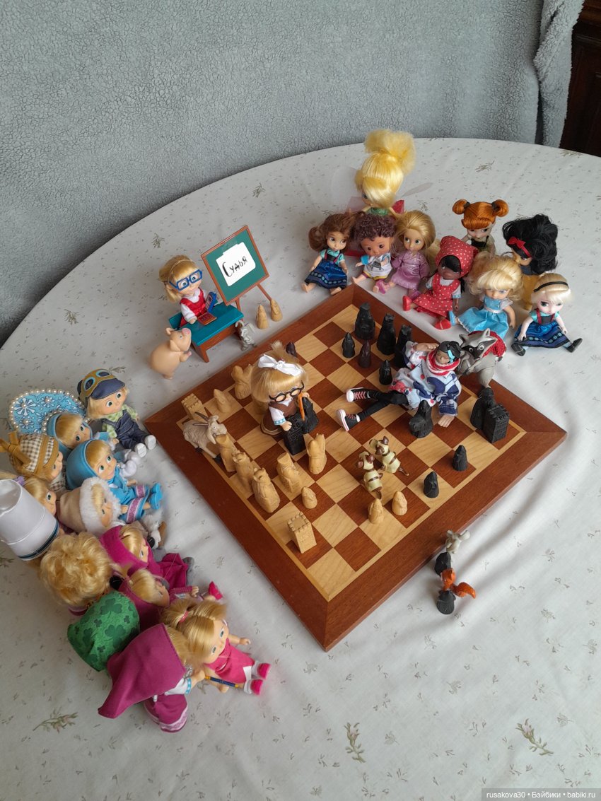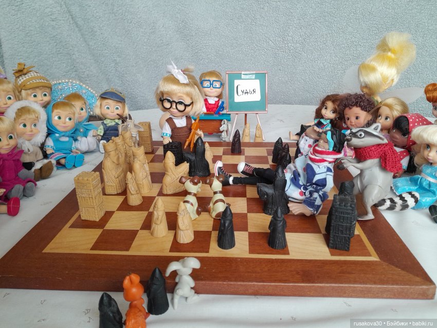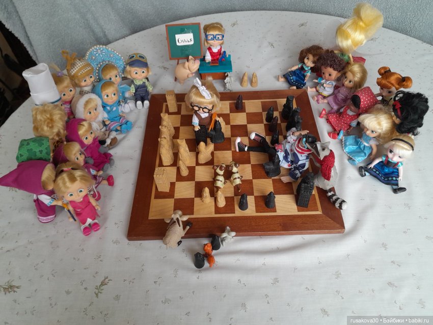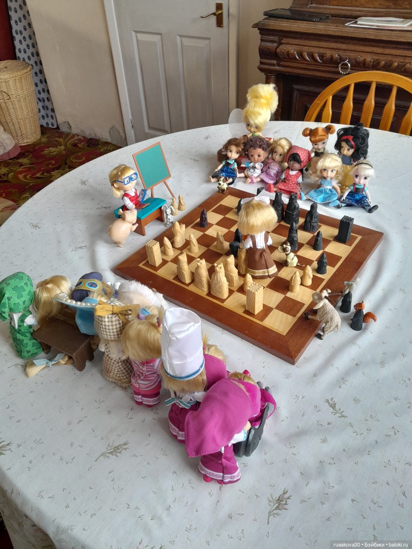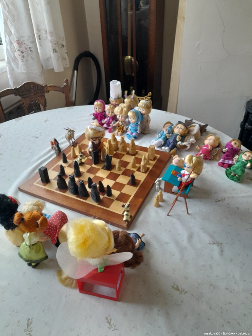 А вот к топику нашла старенькую фоточку своих Маш, из 2017-года аж прилетела… Я и позабыла совсем, что папа дорожные шахматы мне передал для кукол. Надо достать срочно) (Вот и папочку вспомнила, благодаря вам, удвительно как совпало все)