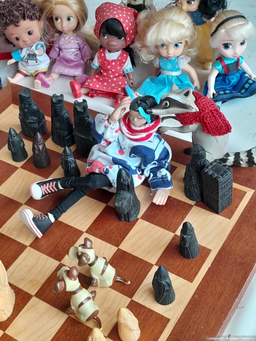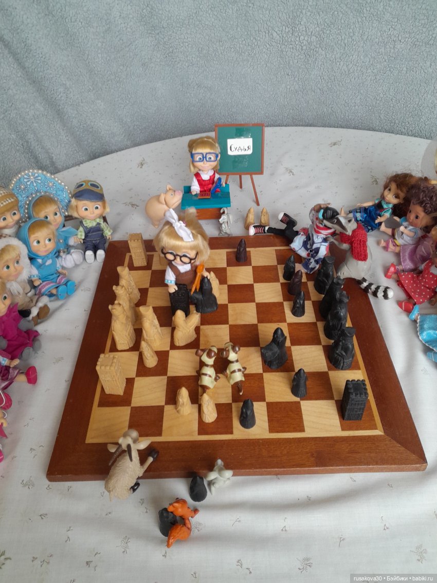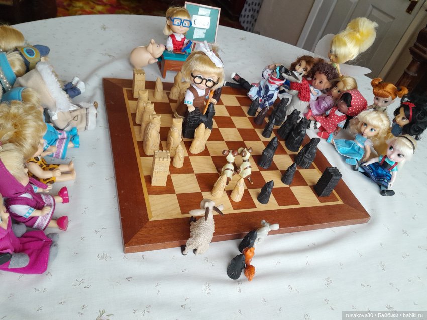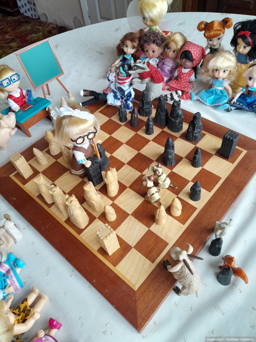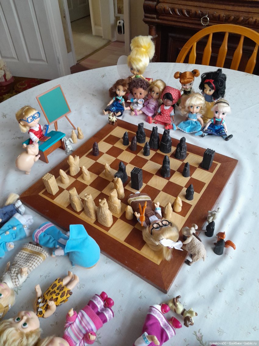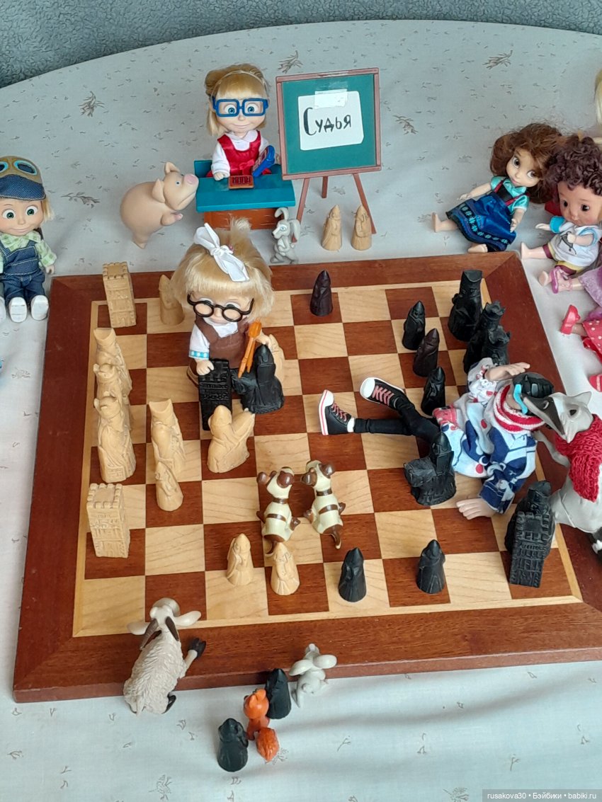 А вот к топику нашла старенькую фоточку своих Маш, из 2017-года аж прилетела… Я и позабыла совсем, что папа дорожные шахматы мне передал для кукол. Надо достать срочно) (Вот и папочку вспомнила, благодаря вам, удвительно как совпало все)