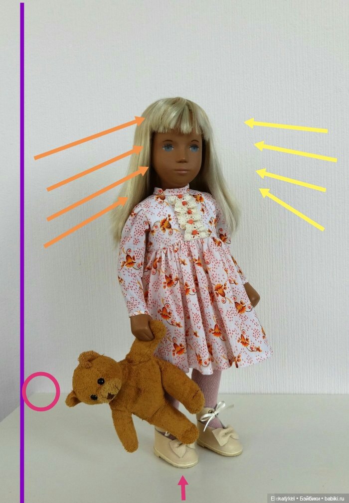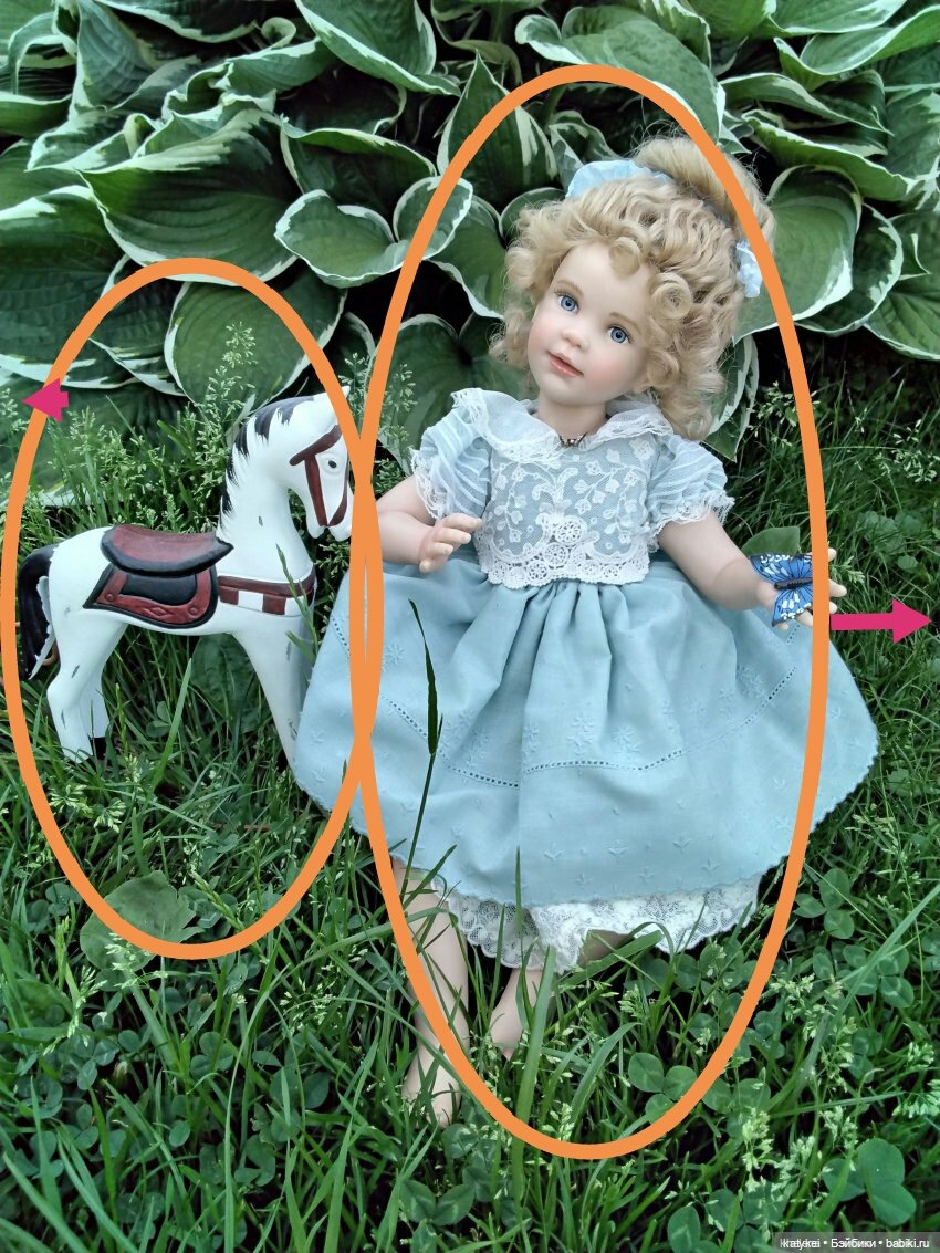 Композиция. Поза куклы странная — или так надо? Взгляд вниз не информативен, либо на нас, либо на что-то.