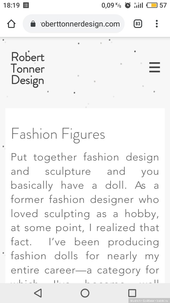 А то и произошло с Робертом, что он закрыл свой сайт Tonner Doll, офис в Нью Йорке, переехал, стал искать другие возможности приспосабливаться в этом конкурентном мире :)