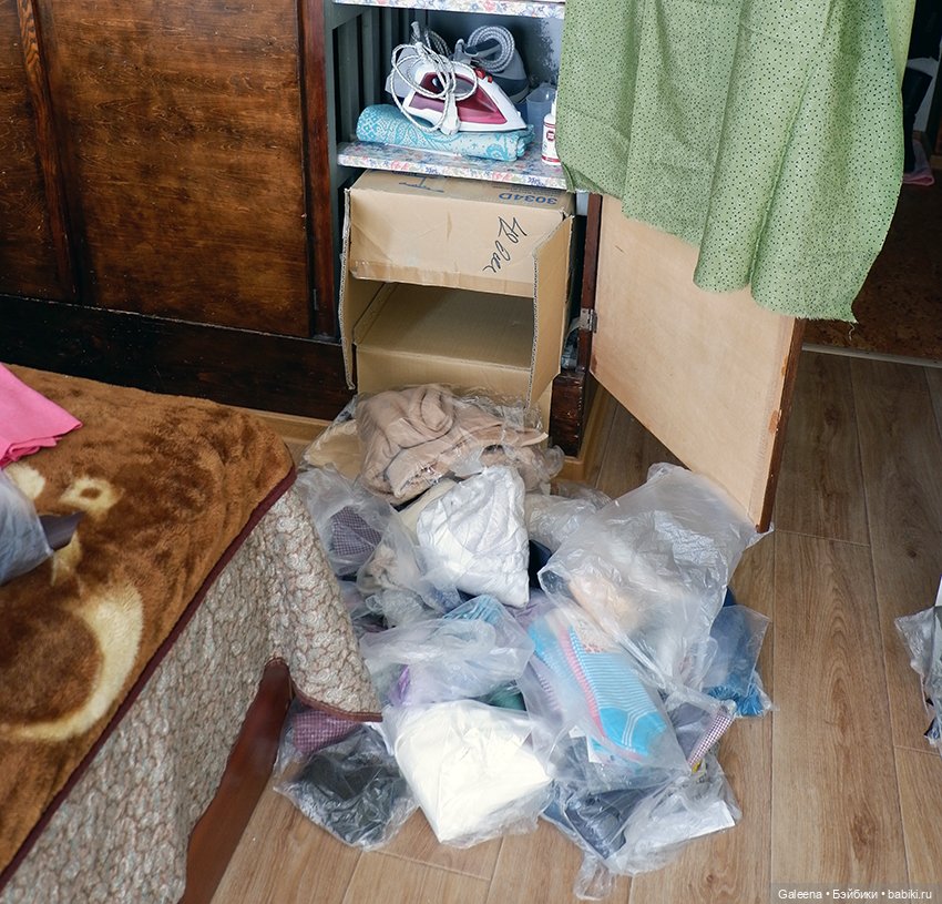 А в левом много всего — тут и шляпные коробки, и коробки, где хранятся самовары, и переноски для кукол. Когда куклы дома, в этих переносках хранится одежда для мелкоты.Вы думаете, что история шкафа на этом заканчивается и больше никакие катаклизмы ему не грозят? Как бы не так!