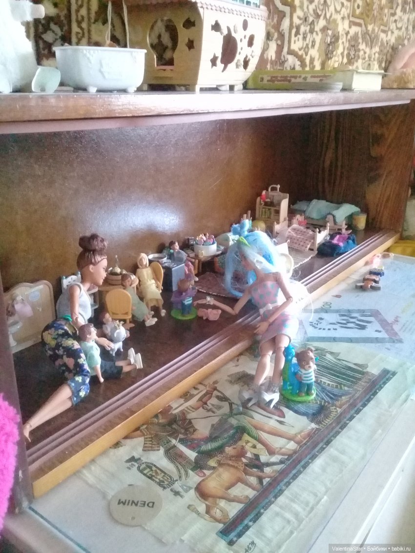 В моем детстве была этажерка деревянная, где 4 этажа занимала одна семья барбиобразных кукол. Мебель делал папа.