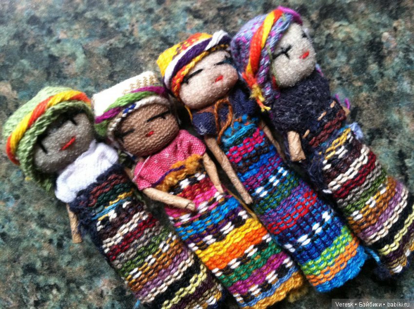 В Гватемале знают, как утешить детские печали. Их помогут унять маленькие «куколки беспокойства». Эти малышки ростом 5 см, их делают родители вручную: деревянные палочки, разноцветная шерсть, лоскуток одежды — и помощница готова.
