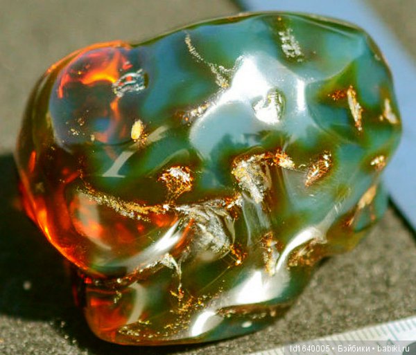 Редко встречается зеленый и черный янтарь и почти уникальной находкой является голубой или синий камень.