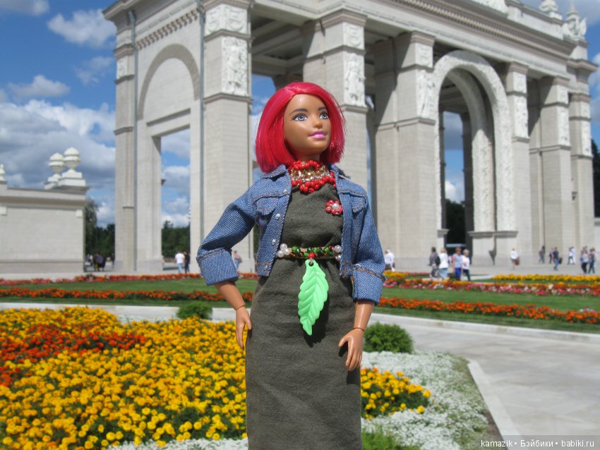Аурика с удовольствием погуляла среди цветов. Для нее они были огромные — как в сказочном саду! На Аурике то самое платье, в которое я влюбилась в «Детском мире». Специально ради него купила ту куклу, которая была в него одета. Мне кажется, Аурике очень идет этот цвет.