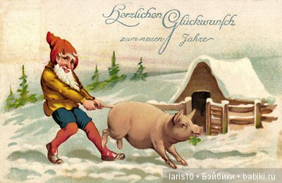 трубочист, поросенок, божья коровка и четырехлистный клевер как символы пожелания счастья в Новом Году.Деда Мороза с подарками уже нет, ведь он уже посетил всех на Рождество.Елки некоторые на Новый Год уже убирают, а некоторые еще оставляют их стоять в доме чтобы продлить атмосферу праздничных дней.