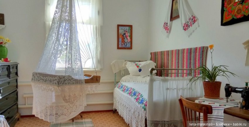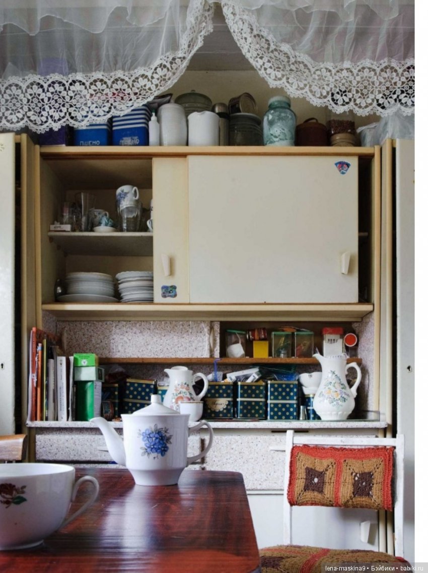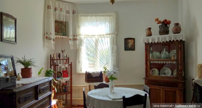 А сервант, где стекла изнутри были украшены вышитыми занавесочками! За ними стояли банки с вареньем, сахарница и вазочка с карамельками!