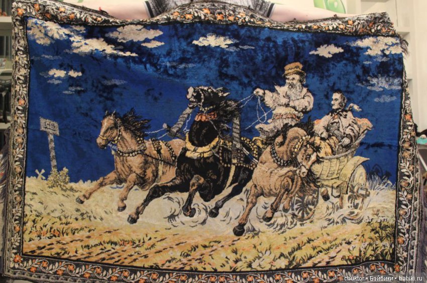 Ковер тоже был, но не с оленями, а с лихой тройкой коней — вороной казался мне страшным и одновременно прекрасным. Ковер обгорел после пожара с правой стороны, поэтому я всегда гадала, лежа вечером в кровати — кого же везет извозчик?