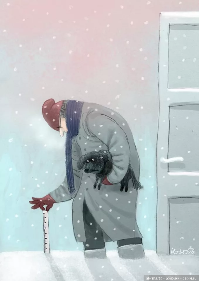 У нас всё точно так же происходит. И глубина снега, и кровать занята одной маленькой собачкой!