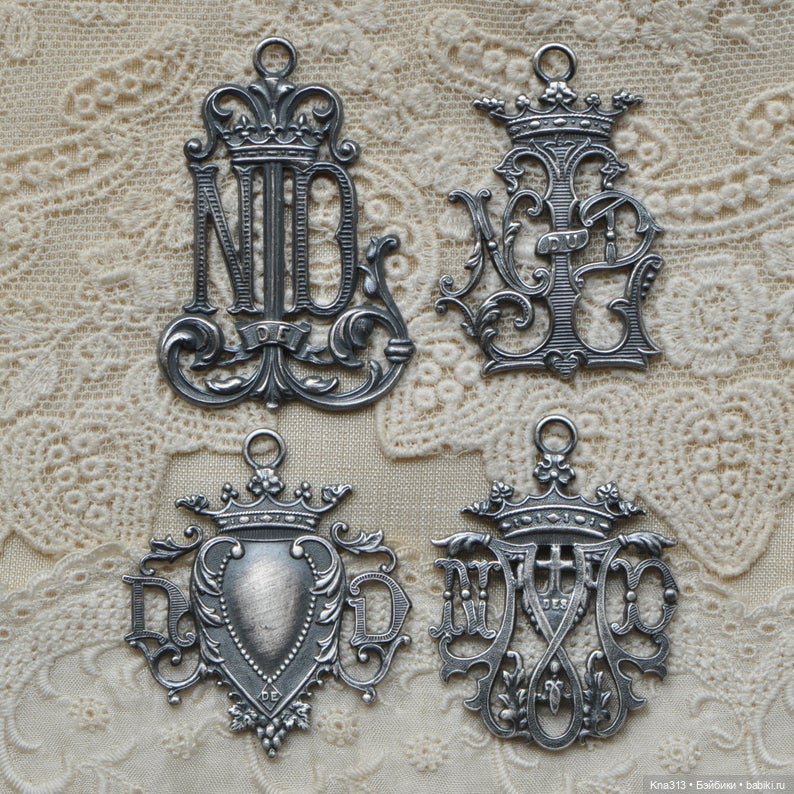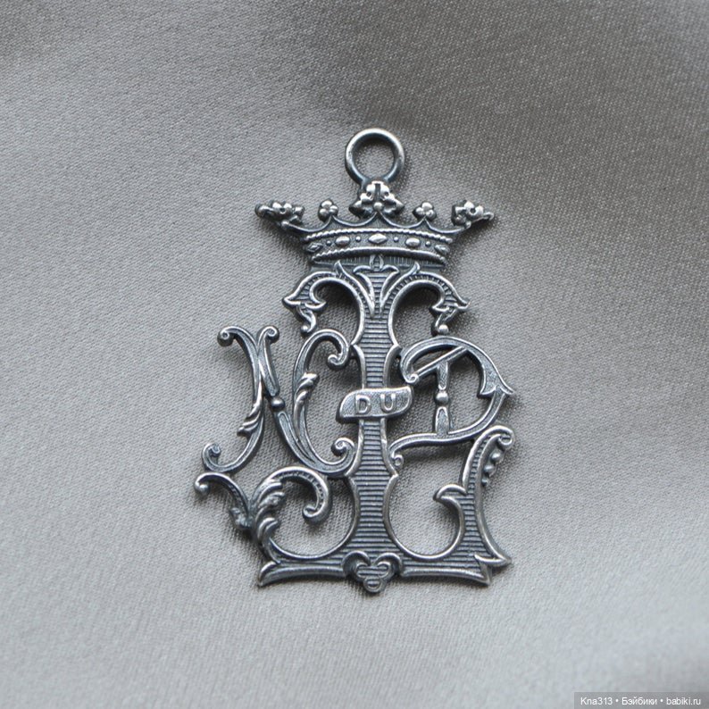 В процессе работы, я вдруг поняла, что моей красавице не хватает брошечки, стала высматривать их по блошкам, магазинчикам, ярмаркам… и вот, наткнулась на одну с монограммой… сначала постаринке зашла на «Ответы» (раньше очень неплох был), а сейчас какой-то выскочка обозвал, из-за автоправки т9.