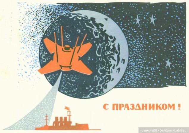 А потом тема космоса стала встречаться в открытках с Новым годом.