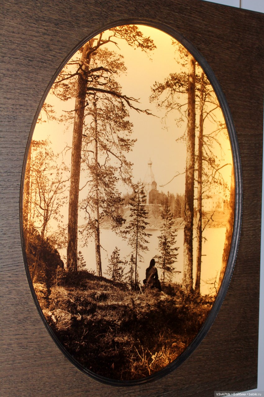 Экспозицию открывает большое фоновое изображение Валаамской обители.