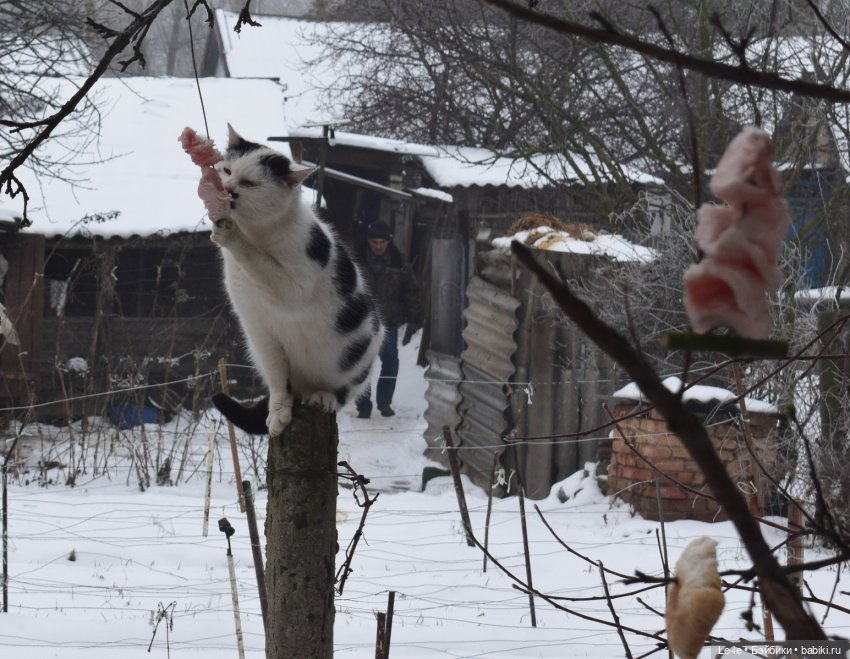 Для поднятия настроения фото нашего уличного котика, который отнюдь не от голода (посмотрите на его животик), а чисто из спортивного интереса покушается на синичкино сало. Спорт у наших котиков такой))