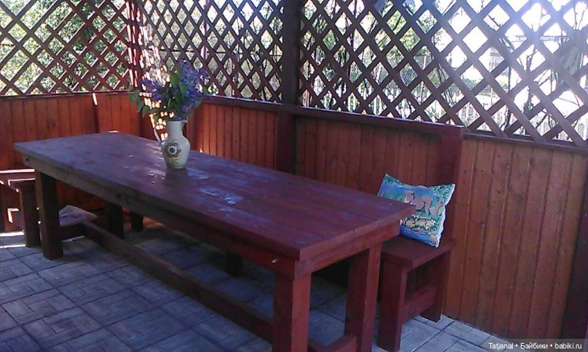 Я тоже храню вышивки, правда использую их на даче вот в таком виде-думочки на скамьи. Здесь на фото попала одна, но их у меня 6 штук. Есть даже одна новая-сын вышивал курицу 12 лет назад, в 6-летнем возрасте. Ему тогда было интересно сидеть рядом со мной и вышивать