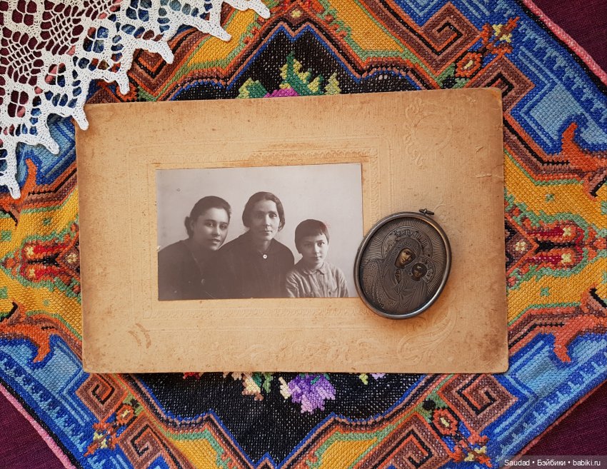 Маленькая девочка- это бабушка Лида, а женщина рядом — Александра Васильевна, ее мама, а моя прабабушка. Тоже была рукодельницы… она умерла до моего рождения, но связала " в приданое" чудесное покрывало. Из ниток х.б. номер 10, крючком. Покрывало пожелтело от времени и его в сундуке немного попортили мыши. Но оно хранится у меня как память… А фото 1930 года. Бабушке 10 лет.