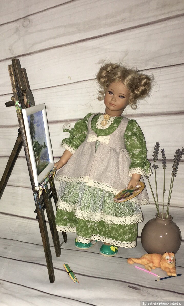 Кукла рисует не на мольберте,