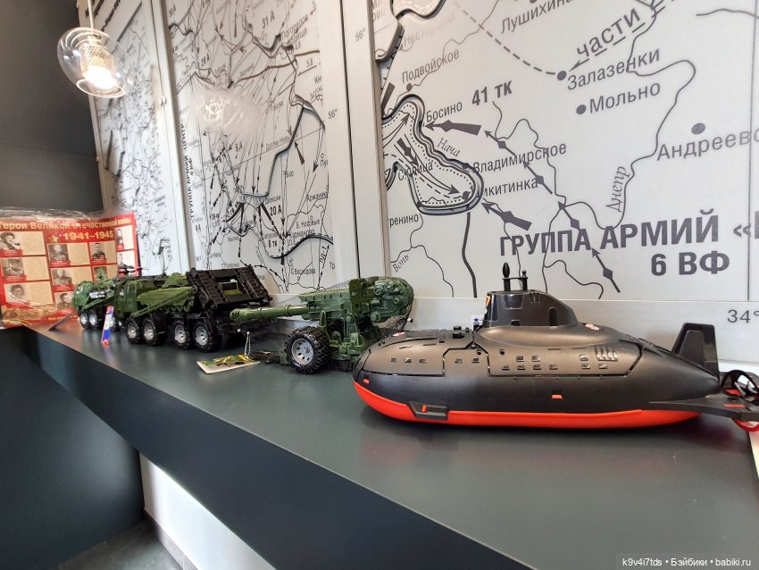 В сувенирной лавке мне понравились машинки (военной техники) и игрушечная подводная лодка для детей.