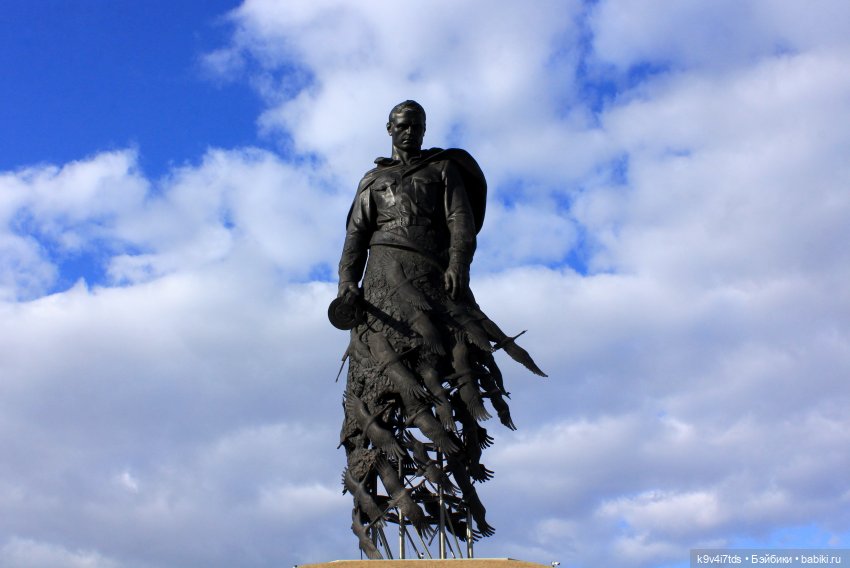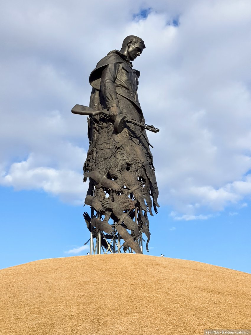 На 10 метровом холме установлена 25 метровая статуя Советского Солдата.