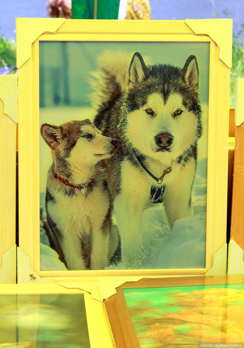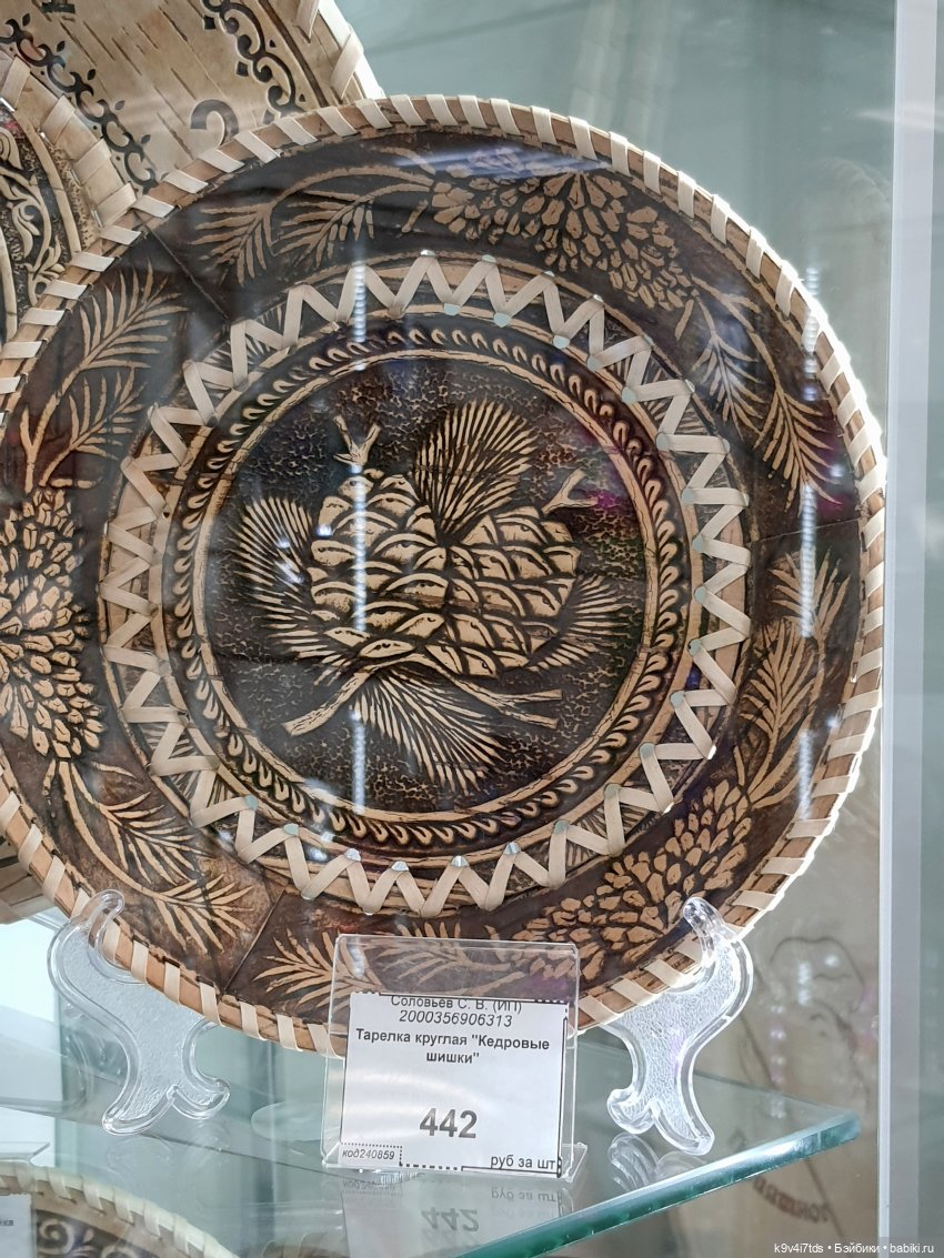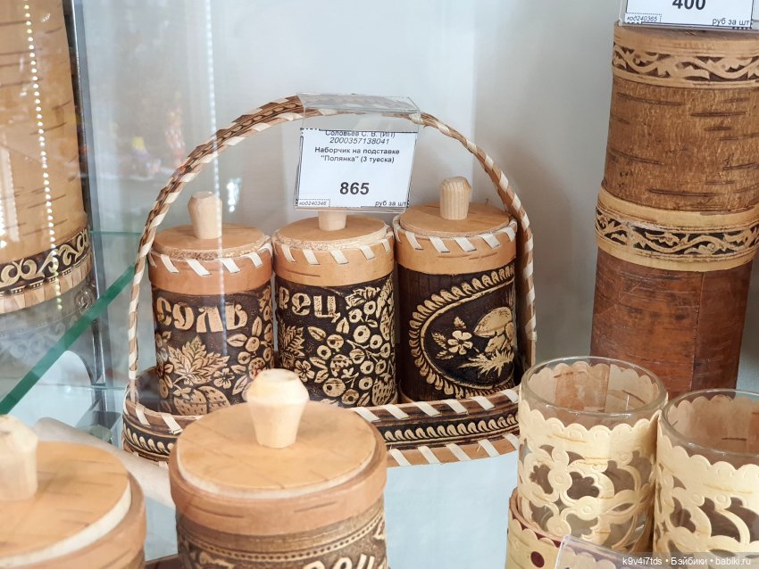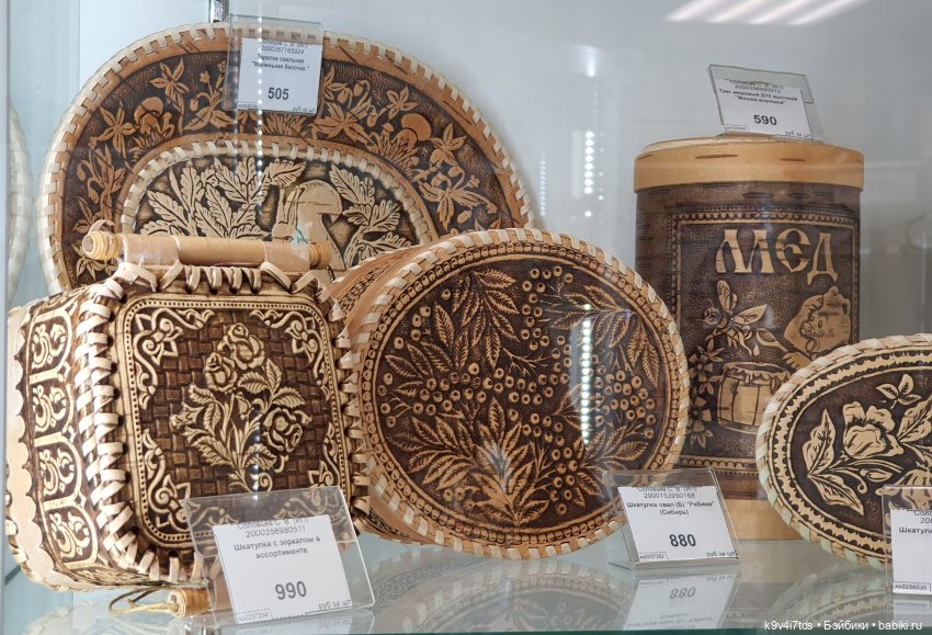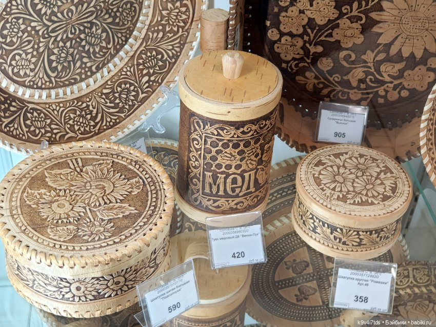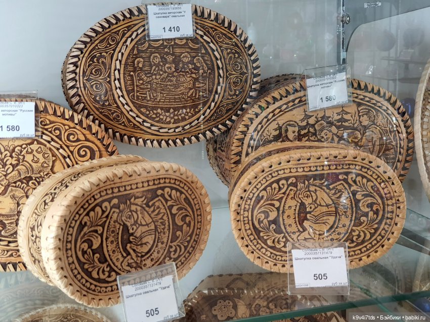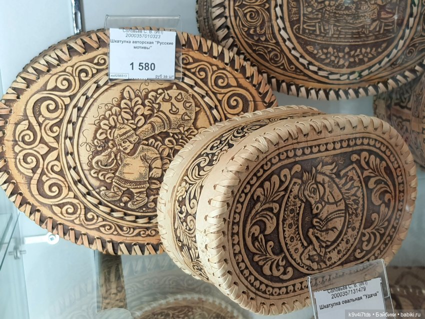 В этой — круглые деревянные досточки и рисунки на деревянных планочках.