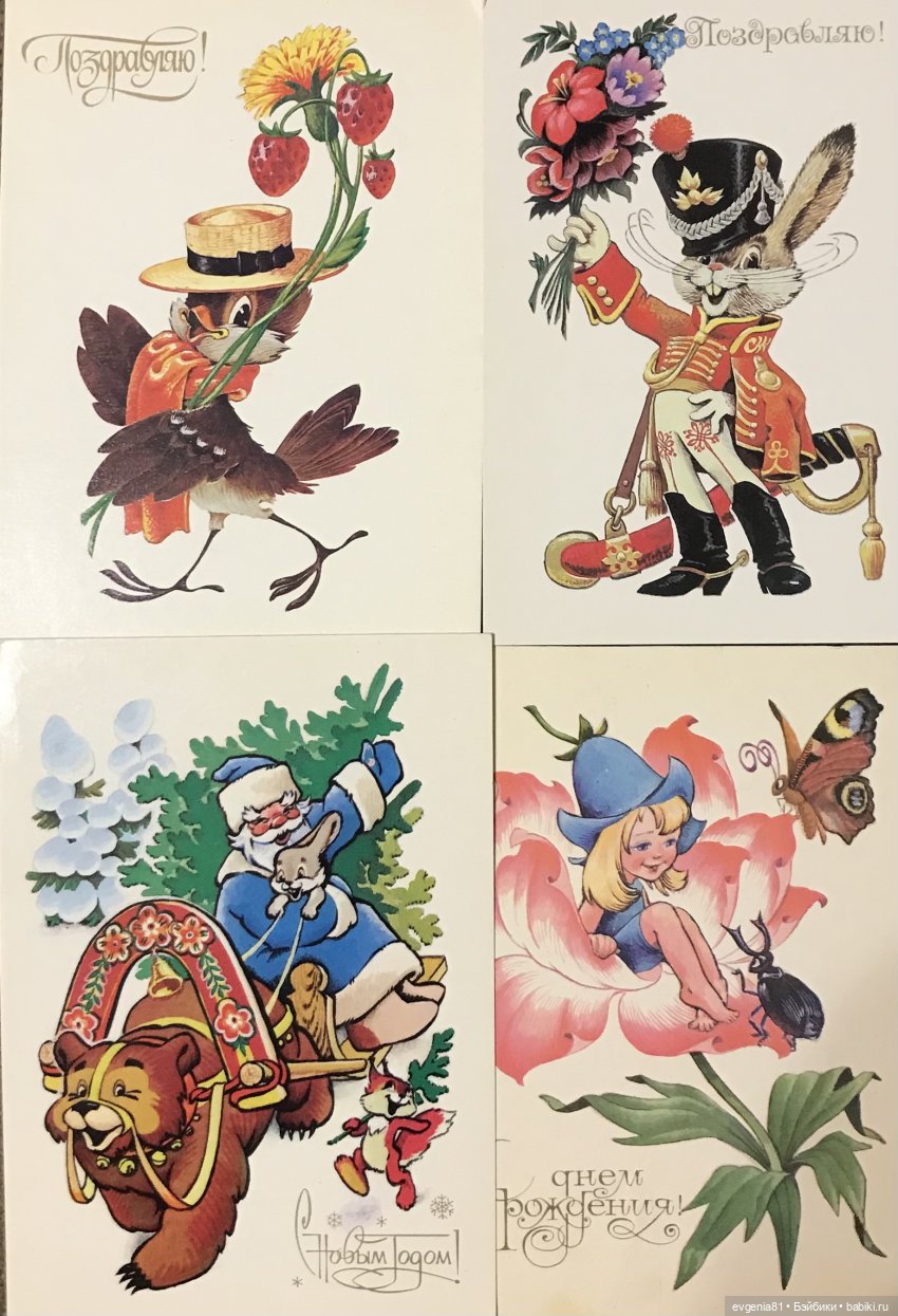 Открытки Четверикова — очень узнаваемы, и милы необыкновенно, также как и Зарубина. Тематика та же — Новый год, 8 марта, День рождения — любимые наши праздники детства))