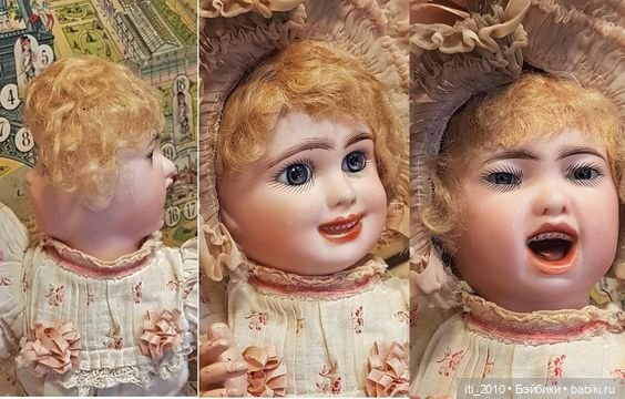 Очень поразил трёхликий пупс. Не знала, что они есть и среди более поздних кукол, думала, что на фарфорово-головых и закончились, поскольку даже в те времена особенной популярностью они не пользовались. Пдэтому малочисленны, редки и весьма ценны.