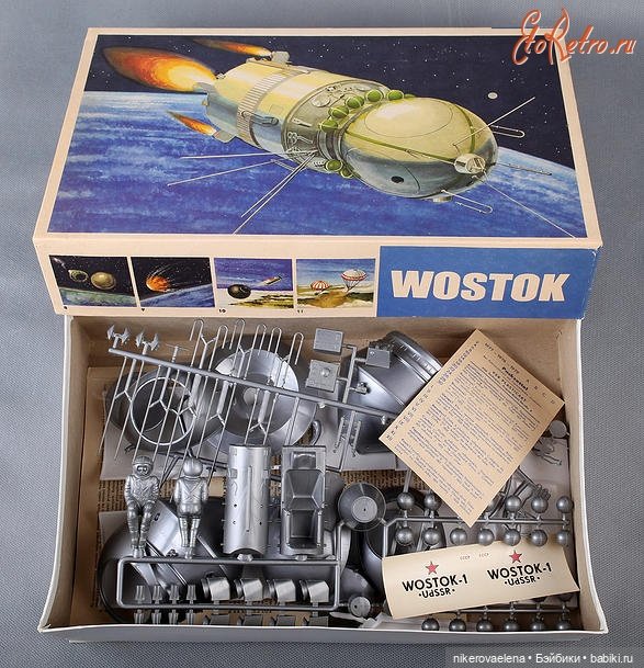 А коробки сохранились потому, что я порой от упаковки испытывал не меньшее эстетическое наслаждение чем от ее содержимого. Это потом это назовут «техническим дизайном», а тогда мне это казалось просто красивым. Жаль что сохранились не все. А было еще много склеенных самолетов, кораблей, танков. Был даже космический корабль Восток, с настоящей фигуркой Гагарина (да именно Гагарина, поскольку в спускаемом аппарате была катапульта, а она была только в первом Востоке). К сожалению их тоже уже нет :(