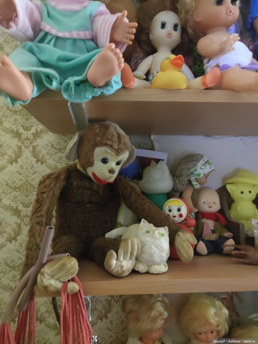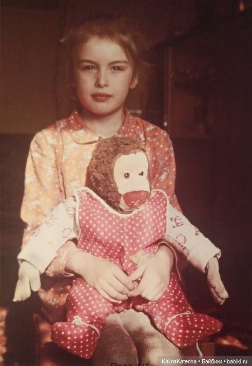 У меня в детстве тоже была обезьянка Жаконя — но большая, как настоящий ребенок, тяжеленькая, набитая опилками. Я увидела его на высоком шкафу в 3 года в гостях. И отказывалась уходить без него. Мне подарили эту обезьянку и мы с ней не расставались до моих 7 лет. Во время переезда на новую квартиру не забрали его сразу от бабушки, где жили раньше. А когда вернулись — бабушка его выбросила — думала, такой латаный-перелатаный никому не нужен. Как я рыдала…
