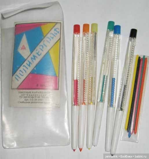 фото из интернета В детстве я и предположить, конечно, не могла, что в середине нулевых я буду работать в детском саду при этом заводе и такие желанные прежде карандаши будут у нас использоваться как счетные палочки и материал для детских поделок — так их будет много и такие они будут малоценные. Ещё были цанговые карандаши, лично я их очень любила, и несколько живы у меня до сих пор, сын ими рисует. Да что им сделается, они вечные; грифелей только совсем не осталось. Даже не знаю, продаются ли сейчас такие.
