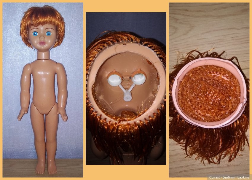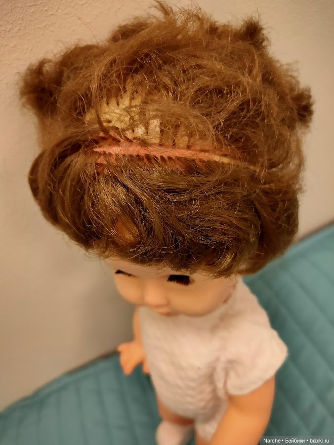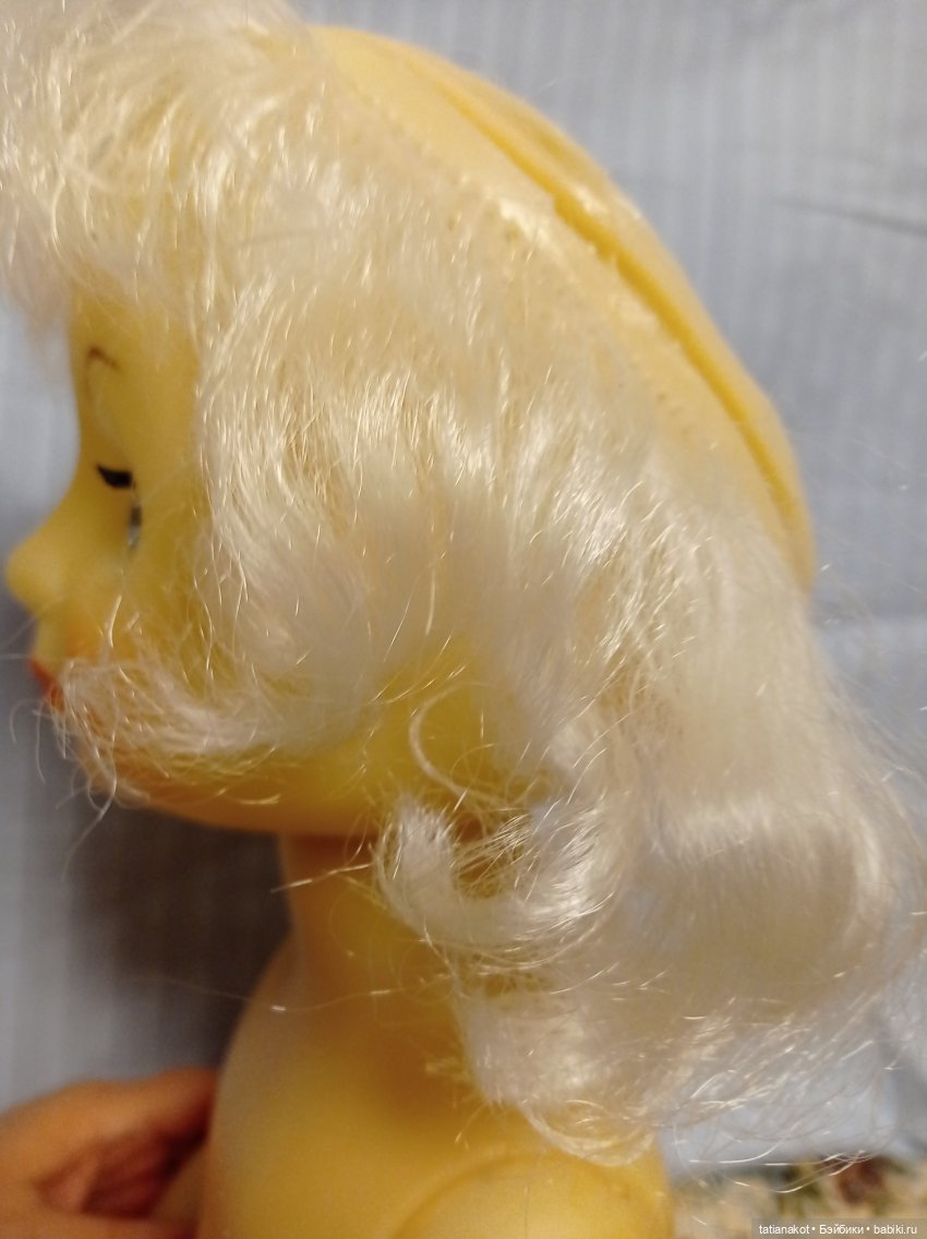 И тогда много какие куклы выпускались на фабрике с париками из пакли, у которых пейт не снимался.