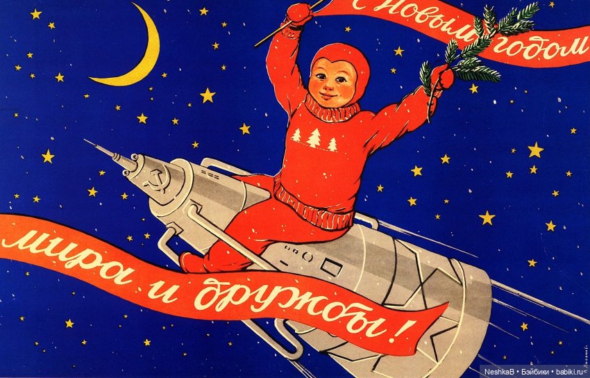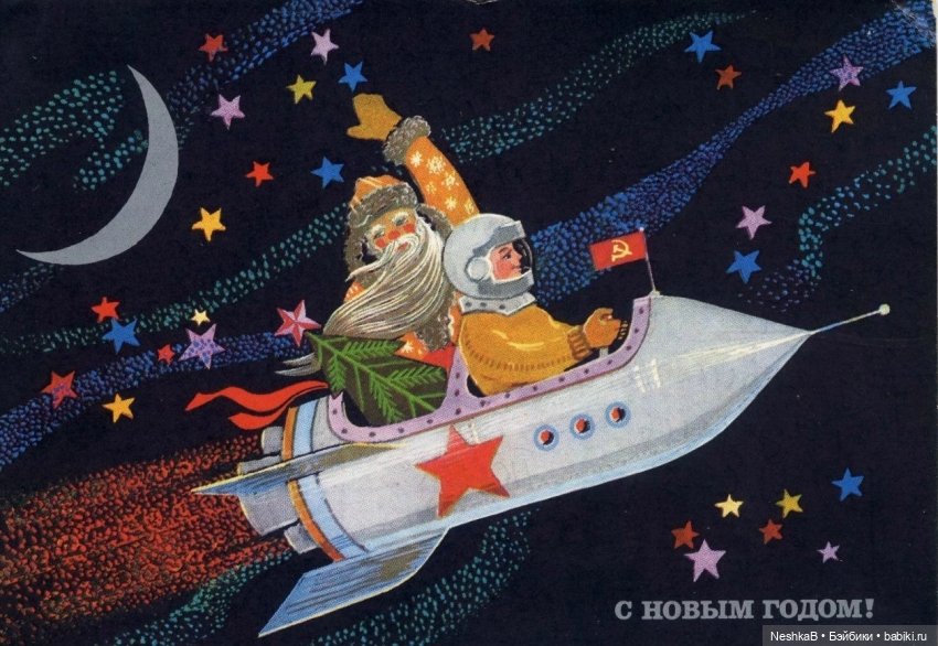 У меня тоже есть парочка старых новогодних открыток на тему космоса!