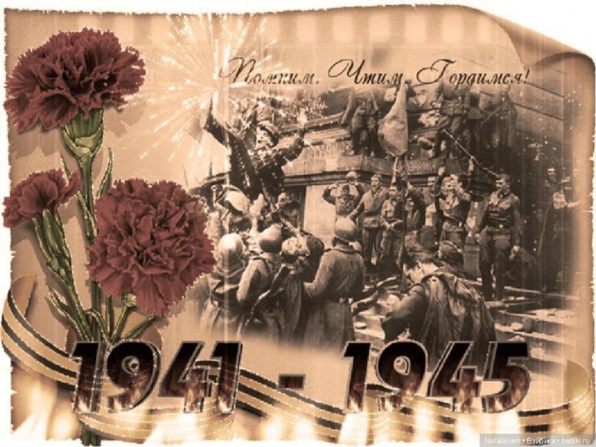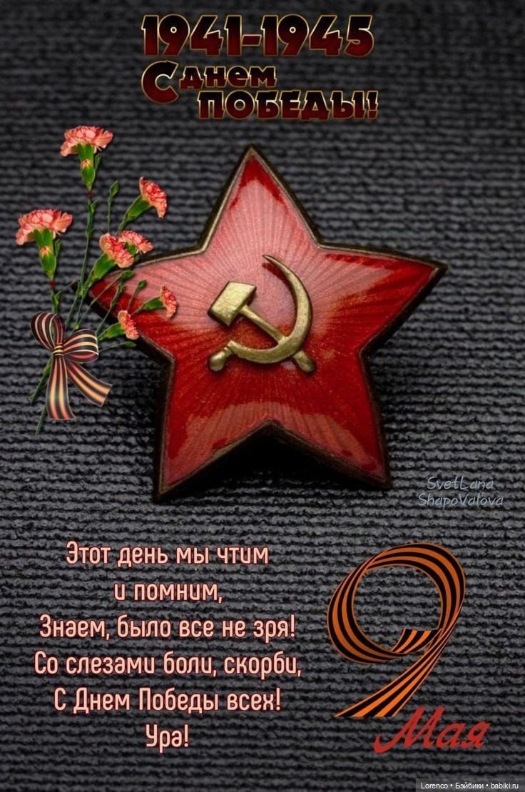 Поздравляю всех с великим праздниклм Победы советского народа над фашизмом! Желаю всем мирного неба! Пусть это желание сбудется!