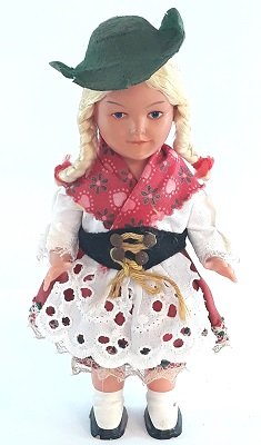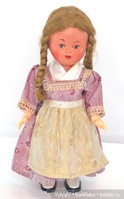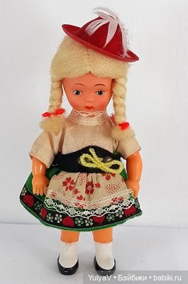 Ладно, думаю, я тебя приголублю, косички уложу, повеселеешь. Приехала, бьюти комплекс приняла и… ничего! Никаких изменений! Грустит! Вспоминаю, что пока волосы венцом укладывала мне мешал клей, нанесённый на самую макушку. Зачем? А, шляпка была! А какая? Наряд-то национальный, немецкий вроде. Листала-листала, да вот же! Шварцвальдский народный костюм. Сразу понятно, чья сувенирка — ФРГ, Баден-Баден.