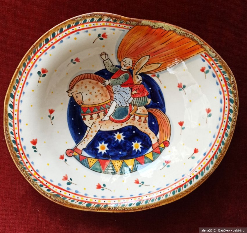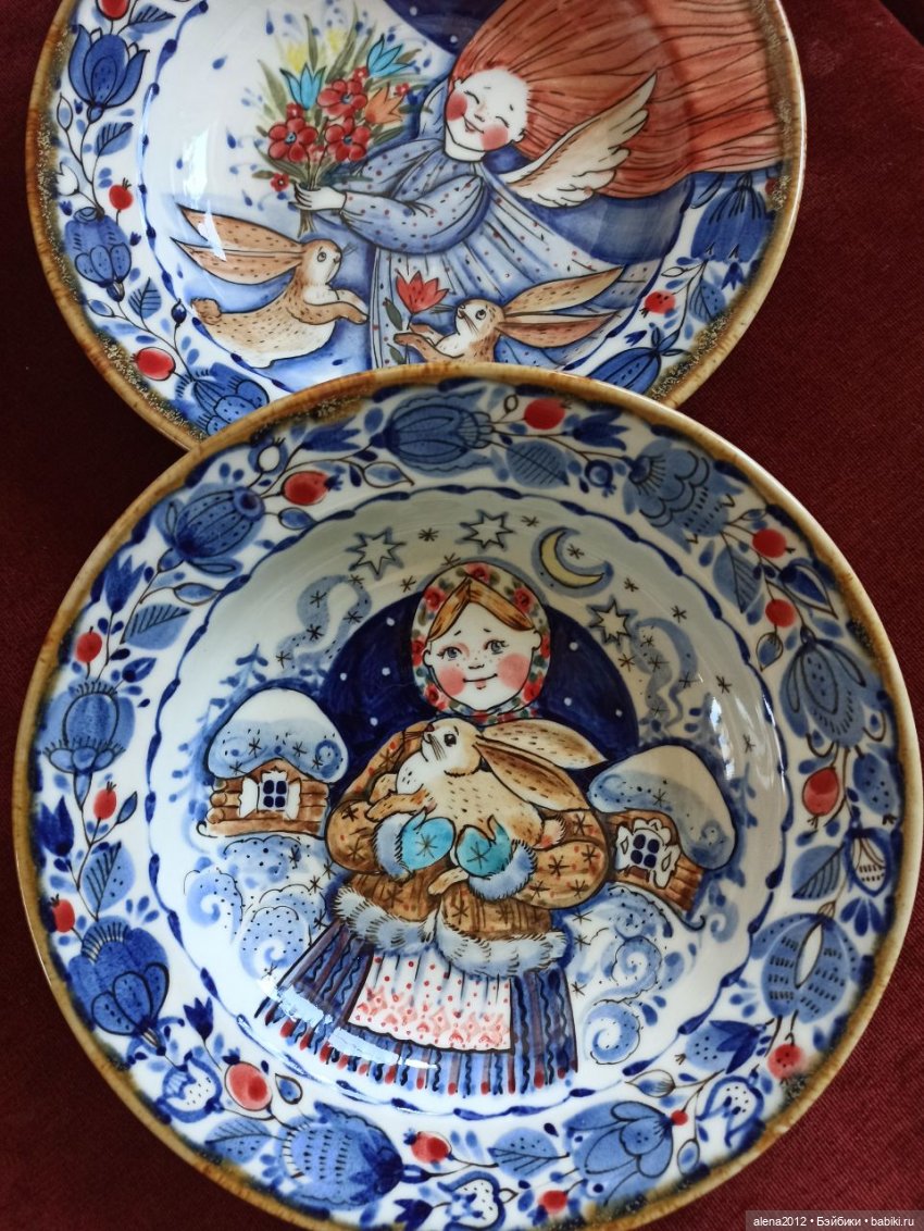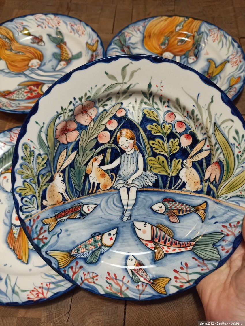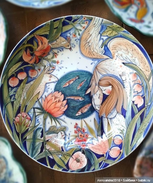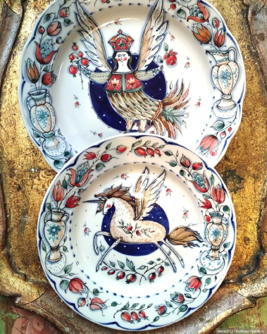 Сначала стала разглядывать картинки, подумала ещё, что стиль майолики Гжели. А уж потом прочитала Ваш текст, что художник и правда в Гжели училась. Все-таки это очень узнаваемо.