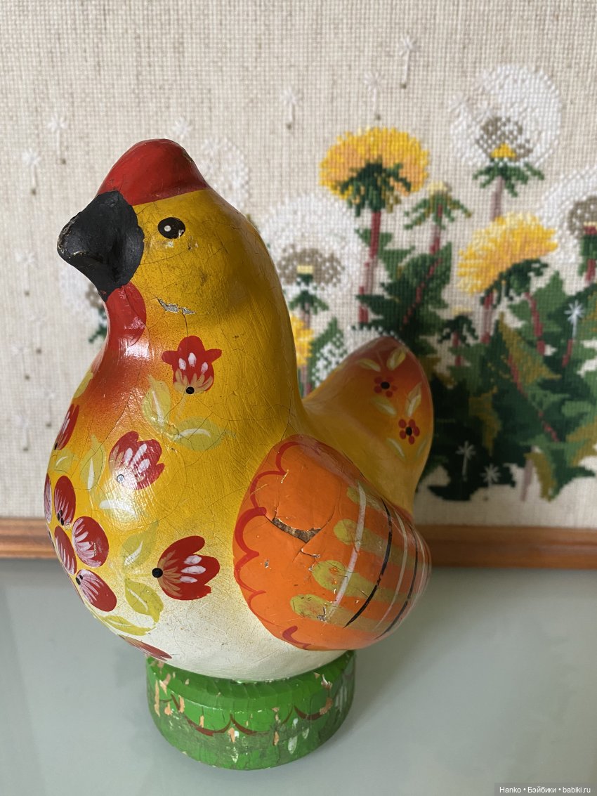 Курочка чудесная, я все искала в пару петушку, не сложилось. Ермиловская тоже. Нашла похожую с этикеткой.