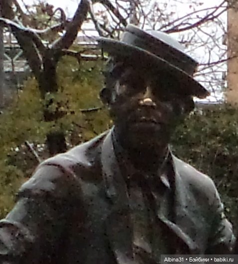 Ю. Никулин в роли дворника Тихона («Двенадцать стульев»). Скромно стоит у входа в гостиницу. Ели нашли, хотя два раза прошли мимо, спасибо добрым людям, подсказали :)