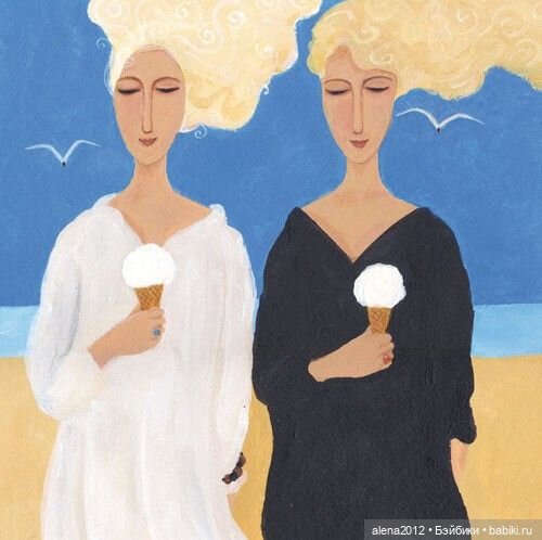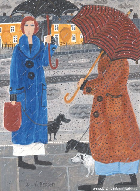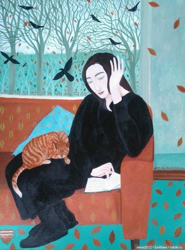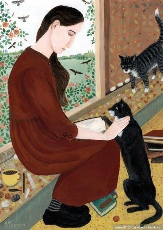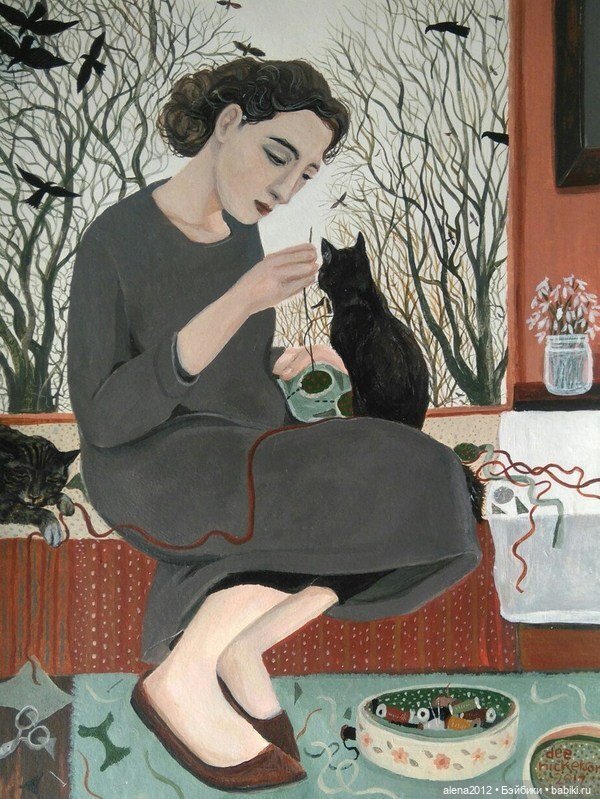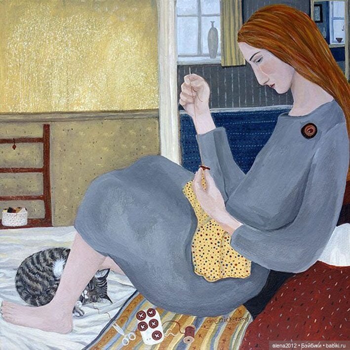 Очень атмосферные работы английской художницы. Привычную домашнюю жизнь Ди изображает так, что хочется зайти к героиням на чай и остаться навсегда. Неспешное приготовление еды, стук вязальных спиц, тихое кошачье мурлыканье, парящие в небе птицы, прогулки у моря. Уютный женский мир.