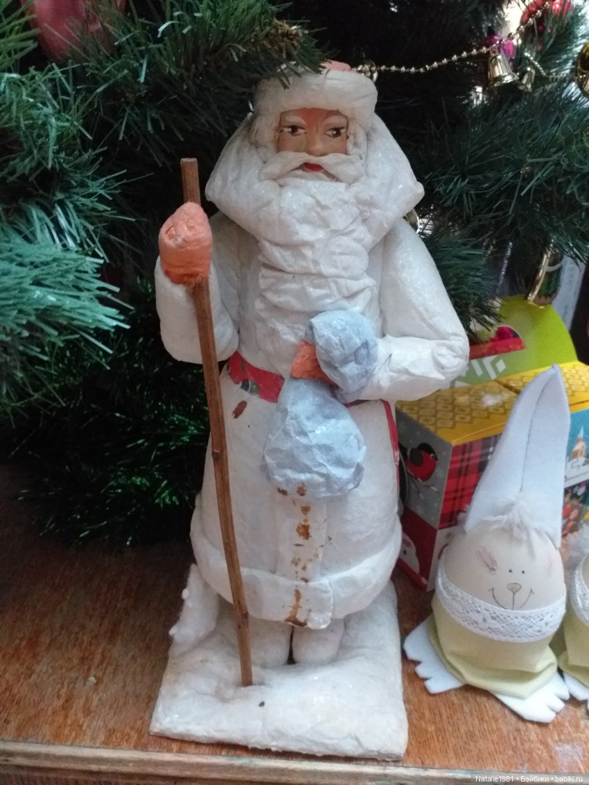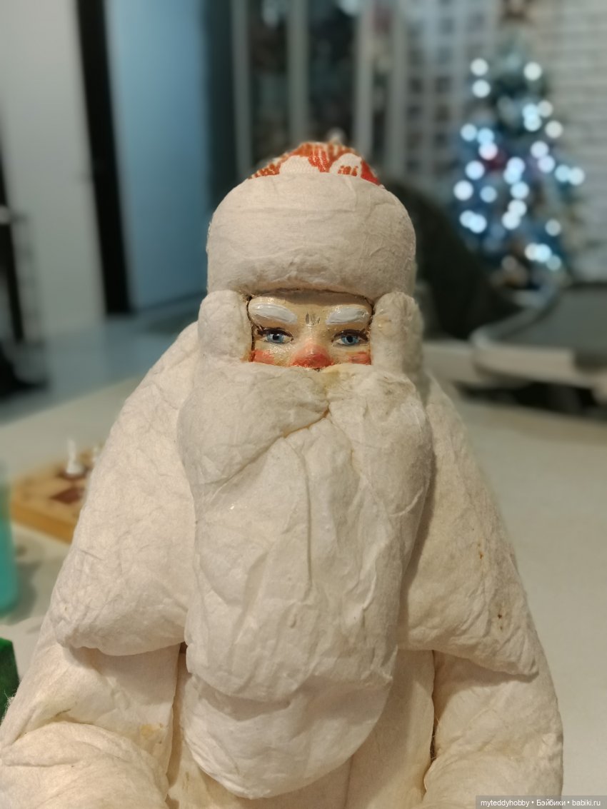 Приобрела на Авито старенького ватного дедушку мороза.