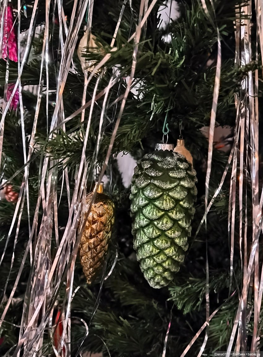 В новый 2023 год, мне захотелось, чтоб на ёлке было много шишек, ни одного шарика не повесила))