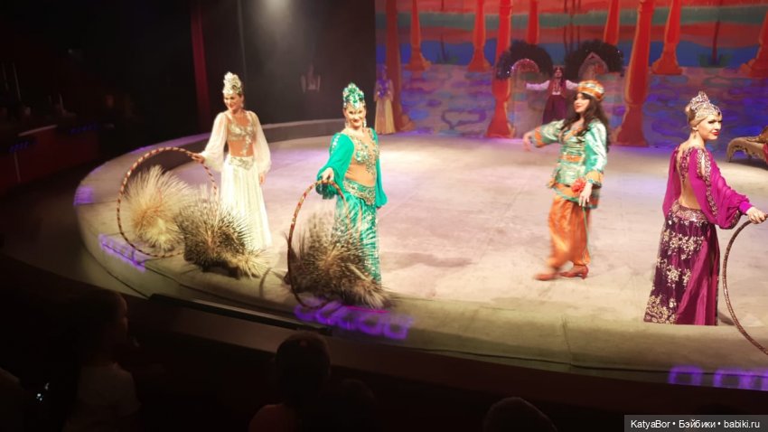 Очень колоритные декорации. И очень позитивные животные-артисты. Видно, что им нравится выступать. Ухожены и довольны жизнью.