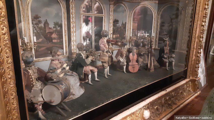 Весьма интересный экспонат — Автоматон, создал французский мастер Жан-Мари Фалибуа в XIX веке. Это механическое изделие с тремя обезьянками, которые играют на музыкальных инструментах.