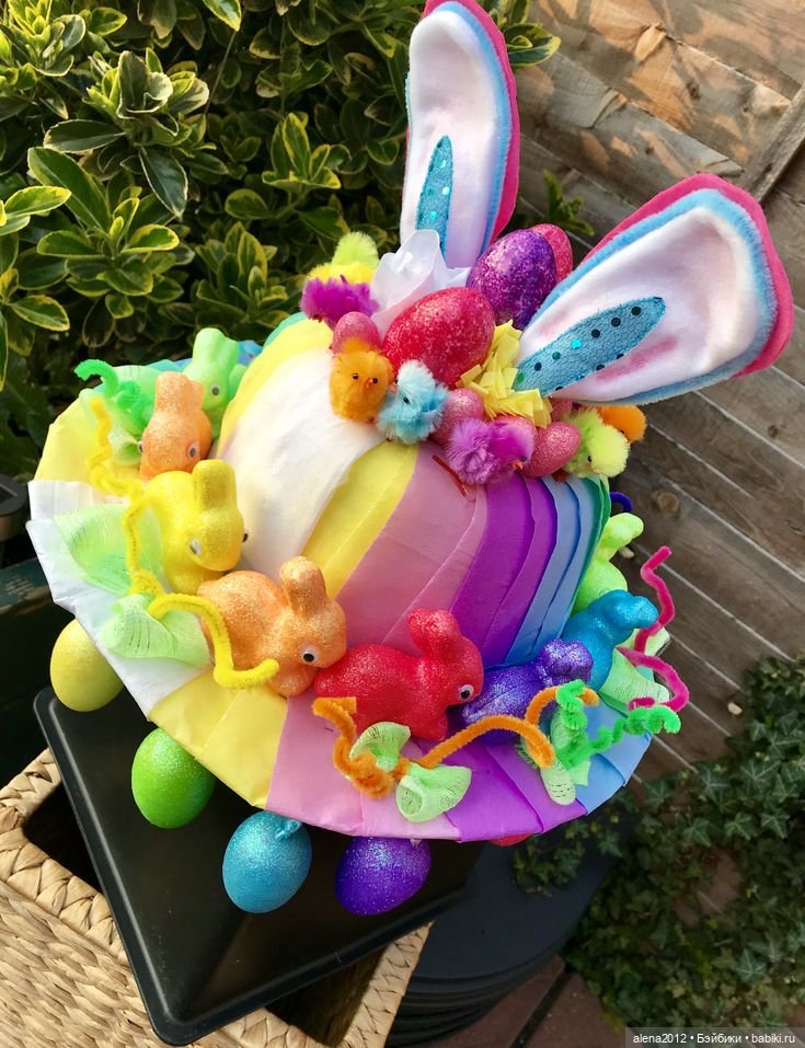 В наши дни, когда речь заходит о пасхальных шапках, все внимание уделяется размеру и привлекательности. Поэтому в моде огромные, безумные и странные пасхальные творения, в которых создатели прячут пасхальных кроликов, яйца и цыплят. Кстати, изготовление пасхальных шапочек очень популярно среди детей за рубежом.