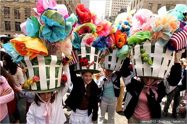 Однако ношение нарядных пасхальных шляпок тесно связано и с другой, американской, традицией. В 1870-х годах состоялся так называемый Пасхальный парад..Парад на Пятой авеню в Нью-Йорке сталстал первым пасхальным парадом в Америке.