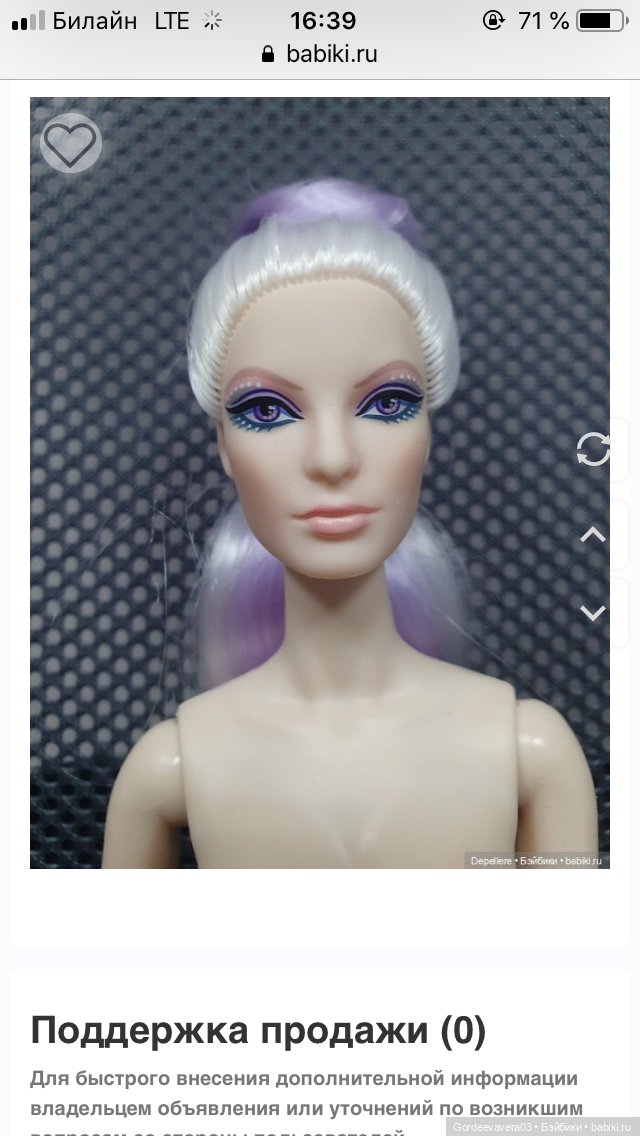 Потом было многое. Я снялась в сериале «Июльское колдовство»-специально снятом для меня. Мне не раз меняли имидж-так появились мои длинные ресницы и короткие волосы. Иногда я отдыхаю в коробке, но Хозяин все равно возвращается ко мне, потому что ценит. Сейчас я получила новое, изящное и подвижное тело, которое наконец позволило мне сидеть, жестикулировать и принимать различные, фотогеничные позы. Мной дорожат. Мной восхищаются. Я уже три года являюсь не объектом желаний, а Собственностью. И я бесконечно счастлива!